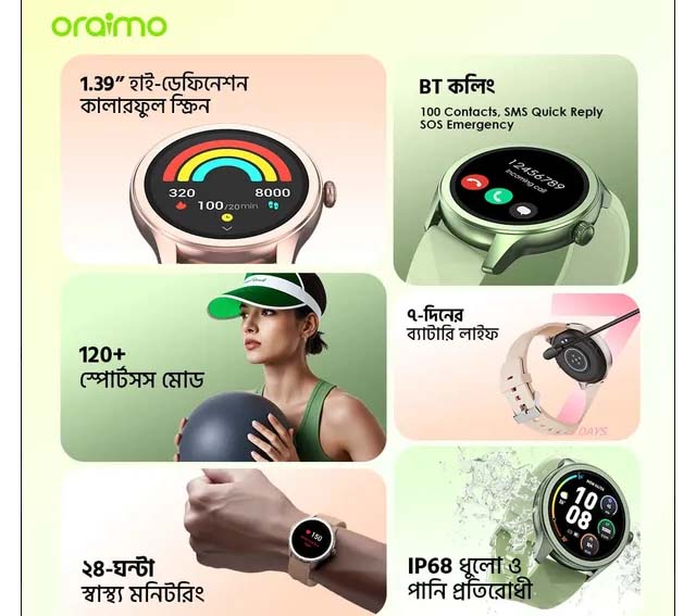 oraimo Watch 2R Colorful 1.39" TFT IP68 Smart Watch